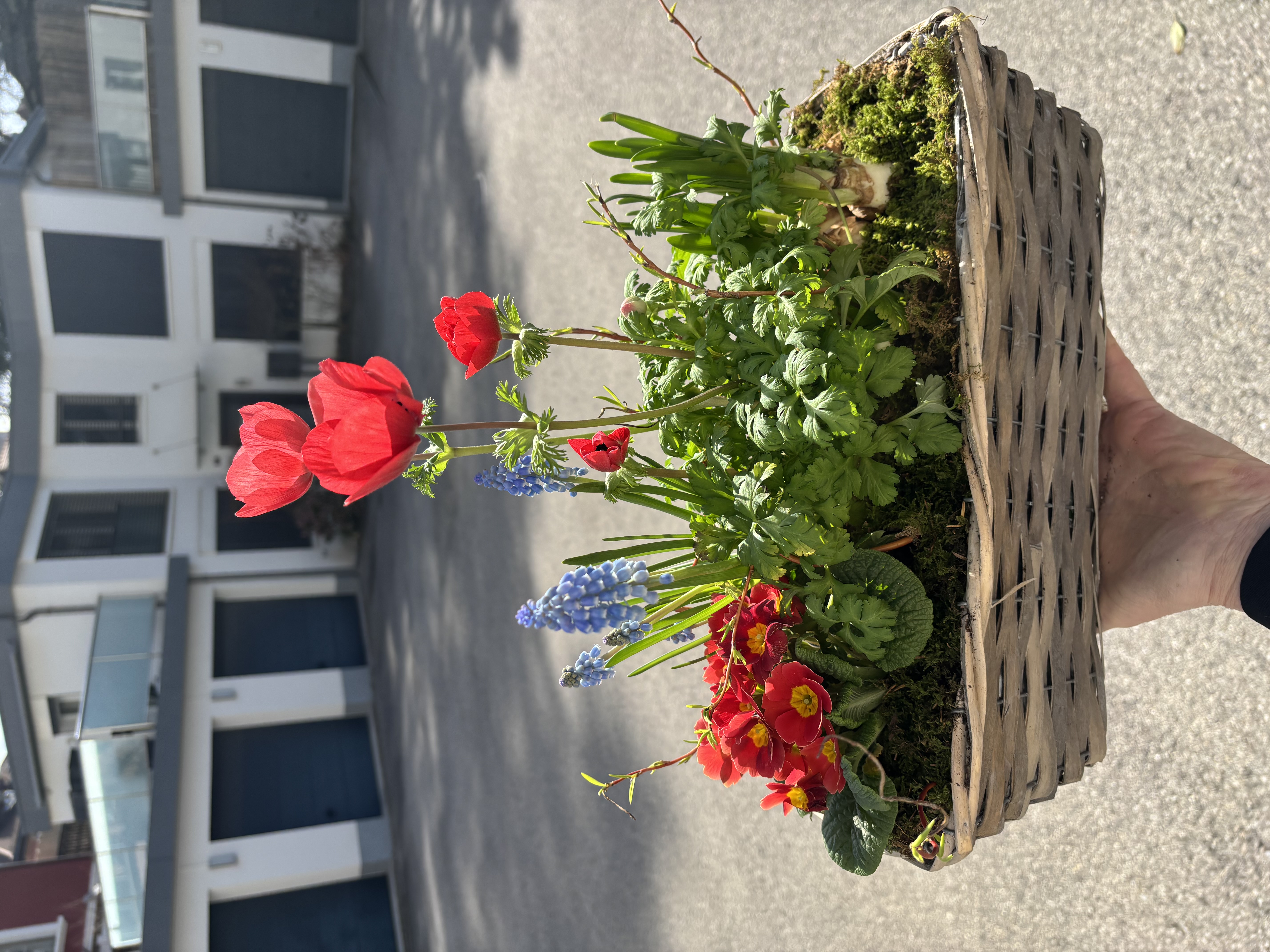 Panier rectangulaire composé de plantes pour l'extérieur